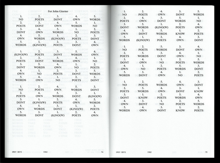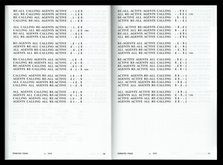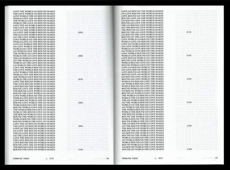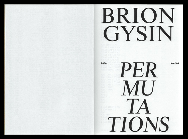 This volume collects, for the first time, all of Brion Gysin’s “permutated poems.” Written between 1958 and 1982, these poems are composed from a brief phrase or sentence whose words are exhaustively or almost exhaustively permuted over the course of each poem. Gysin wrote the texts manually at first, although later, in collaboration with programmer Ian Sommerville, he would generate permutation poems with the help of a computer.