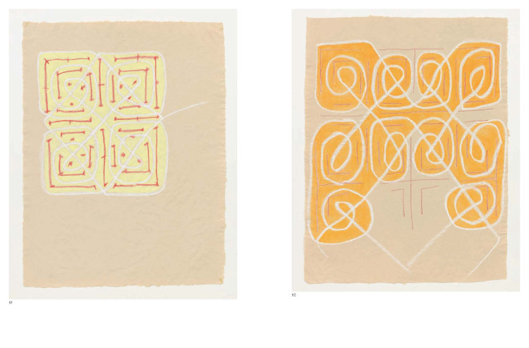 Significant as these works are, other parts of Jonas’ diverse and dynamic oeuvre deserve their due attention. This book is the first comprehensive catalog to elucidate an under-examined component of the artist’s practice. Fascinated by the tension between motion and transcription, Jonas developed “endless drawings” composed of lines that weave around themselves or through a grid.