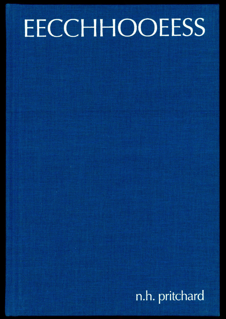 EECCHHOOEESS exemplifies Pritchard’s formal and conceptual sensibilities. A book of ascents and descents, mirrors and doublings, opaque signs, and stuttering repetition, EECCHHOOEESS provides an entryway into the work of a poet whose scant writings have only recently achieved wider recognition. DABA’s publication of EECCHHOOEESS is unabridged and closely reproduces the design of the original 1971 volume.
